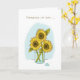 Diese (denken Sie an Sie) Grußkarte enthält eine helle und fröhliche Abbildung von drei Sonnenblumen, die in einer Vase sitzen. Die Karte bietet Hoffnung und Motivation für jemanden, der eine schwierige Zeit durchmacht.