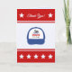 Das ist eine clevere Visitenkarte für einen Schwimmer. Es zeigt einen dunkelblauen LKW-Hut, auf dem sich ein Piktogramm-Schwimmer befindet, mit der Beschriftung "COACH I'm charge". Die Karte ist mit blassen Sternen auf einem roten Hintergrund dekoriert. Im Inneren gibt es einen hellblauen Hintergrund und den vorgeschlagenen Text "Danke: für die Ermutigung, Inspiration und Motivation. Ohne dich hätte ich nicht so hart arbeiten können" oder du kannst es dem Anzug anpassen.