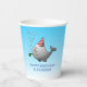 Schwimmbad Party Geburtstagskuppen mit einer niedlichen Abbildung eines kleinen Wals. Der Wal trägt einen rot-weiß gestreiften Party Hut und hat die Geburtstagsparty im Schwimmbad gestartet.