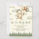 Dieses bezaubernde Aquarelldesign besticht durch einen süßen kleinen Bären, der zwischen den Wolken schweben und sanft von Ballons über einem friedlichen Waldwald getragen wird. Die weiche, neutrale Farbpalette in Beige verleiht dem Hotel ein rustikales und dennoch elegantes Ambiente, das sich perfekt für geschlechtsneutrale Themen eignet. Diese schicke Abbildung ist ideal für die Einladung von Babyduschen, die Dekoration von Kinderzimmern und Kinderartikeln und bringt eine Touch von Wärme und Laune. Der handbemalte Stil verbindet sich mühelos mit Wald- und Waldprojekten und schafft eine traumhafte und zeitlose Ästhetik.