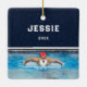 Kreative Schwimmverzierung mit dem Weihnachtsmann und lustige Linie für Ihren Lieblingsschwimmer. Text bearbeiten, um den Namen und das Jahr hinzuzufügen.