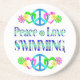 Zeigen Sie Ihre Liebe für das Schwimmen mit diesem Spaßentwurf mit Friedenszeichen, Herzen, Blumen und den Wörtern - die schwimmende FriedensLiebe. Macht ein wunderbares Geschenk.