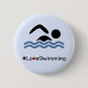 Dieser Knopf proklamiert Ihre Freude an der Schwimmen. Er stellt einen Piktogramm-Schwimmer mit dem #LoveSwimming Titeltext, auf einem blauen Hintergrund dar.