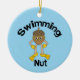 Das Schwimmen von Nut Text mit einer lustigen Akornmutter, die eine Brille und Flossen trägt, ist ein lustiges Schwimmkonzept für Schwimmer, Taucher und Schwimmtrainer.