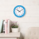 Eine wunderschöne blaue Wanduhr mit einer hellblauen tropischen Wasserstruktur.