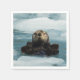 Dekoriert mit einem Bild eines Meeresotters (Enhydra lutris), der auf seinem Rücken schwebt, umgeben von Eisbergen im Alaska-Prinz William Sound. von Ted Raynor