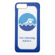 Schwimmgeschenke, Schwimmer auf einem blauen Kreis modernen iPhone 7 plus Design mit einem minimalistisch weißen Symbol eines Schwimmers auf einem zwei Töne blauen Kreis-Meer und Himmel und einer blauen Grenze.