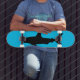 Aqua blau und schwarz Silhouette eines schwimmenden Hais.