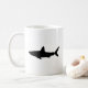 Die Silhouette eines Schwimmhais in Schwarz-Weiß-Design. Sie können die Hintergrundfarbe ändern.