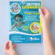 Schwimmunterricht für Kinder Flyer ! Dieses Projekt ist die perfekte Lösung für Unternehmen und Einzelpersonen, die sich gewollt haben, ihre Dienstleistungen im Zusammenhang mit dem Schwimmunterricht für die Jüngsten zu bewerben. Das Design-Projekt ist leicht editierbar, sodass es auf Ihre spezifischen Bedürfnisse und Präferenzen zugeschnitten werden kann. Dieses Design beinhaltet ein blau-gelbes Farbschema, das auf Wasser und die Sonne verweist, positive Emotionen stimuliert und körperliche Aktivität fördert. Nutzen Sie diesen Flyer, um mehr Kunden zu erreichen und neue Schwimmer anzuziehen.
