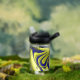 Ein abstraktes Design, das aus Flusswasser stammt und Wirbel in Blau, Gelb und Weiß produziert.