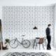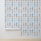 Science-themed wall art featuring 9 cartoon-style icons: atomic models, electromagnetic waves, and laboratory flasks. Perfect for study rooms, classrooms, and science enthusiasts. Clean blue and grey palette fits any modern interior.