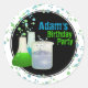 Beakers und Flaschen und viele Bläschen ist eine Formel für Spaß an diesem bunten wissenschaftlichen Labrador-Experiment Thema Geburtstag Aufkleber. Experimentieren Sie mit Text wie gewünscht.