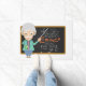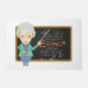 Cooles und lustiges Design mit einem Wissenschaftler, der eine Chemie-Flasche hält, und einem Stock, der die Tafel mit der EMC2-Formel und verschiedenen anderen Formeln zeigt.