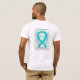 Das Bewusstsein für Sklerodermie nutzt ein aquamarines Band für seine Ursache. Die Shirt-Kunst ist mit einem aquamarinen Bewusstseinsband Engelgemälde versehen. Die Nachricht "Bewusstsein Engel T - Shirt" verweist auf "Skleroderma Awareness". Auf der Rückseite des Shirts befindet sich ein großes Bild und auf der Vorderseite des Shirts ein kleineres Bild. Das aquamarine Bewusstsein Engel Band Art Kleidungsstück kann mit personalisierten Botschaften versehen werden, um für Spendenaktionen Shirts, Shirts für Gruppenspaziergänge, Geschenke für den T - Shirt von Sensibilisierungskampagnen oder andere besondere Anlässe für Merchandise zu finden, um in der Öffentlichkeit das Bewusstsein für die gesellschaftliche Hilfe bei der Gestaltung von Hilfe und Ursache für Veränderung zu schärfen.