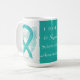 Scleroderma verwendet ein aquamarines Bewusstsein-Band, um Unterstützung für sein Bewusstsein zu zeigen. In dieser benutzerdefinierten Tasse werden aquamarine Bilder der Engelszenografie mit der Meldung "I Hope and Support Scleroderma Awareness" (Hoffnung und Unterstützung der Skleroderma-Aufmerksamkeit) angezeigt. Die aquamarine Bewusstseinswächter Engel Band Art Fotokaffeemassen oder Tasse können mit personalisierten Nachrichten versehen werden, um so wichtige Tasse für Bewusstseinsspendengeber, Sensibilisierungsbecher oder andere besondere Veranstaltungen zu schaffen, oder um Unterstützungsanlässe zu schaffen. Machen Sie Ihre eigenen personalisierten Worte für eine persönliche Botschaft der Hoffnung und Unterstützung zu teilen!