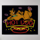 Karo aus Scooby-Doo liegt oben auf einem Vintagen Hot Dog Neon Schild.