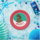 Karo Scooby-Doo in seinem festlichen Urlaubshut und seinen Gläsern aus und kichert mit Lachen und dem Wort "Fröhlich!", das unten steht.