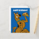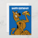 Karo aus Scooby-Doo sitzend mit einem großen Lächeln und hält eine Scheibe gefüllte Pizza aus Kruste.