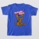 Karo aus Scooby-Doo sitzend mit einem großen Lächeln und hält eine Scheibe gefüllte Pizza aus Kruste.