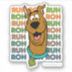 Karo vor seinem klassischen "Ruh Roh" Zitat Scooby-Doo als patentierten typografischen Hintergrund heraus.