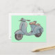 Ein originelles Aquarell- und Farbgemälde eines Rollers auf einem Minzgrün.