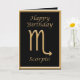 Ein goldenes Scorpio-Symbol Design auf einer Geburtstagskarte. Die Karte verfügt über Vorlagen für Ihre Personalisierung.