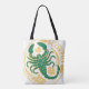 Scorpio - Sternzeichen des Zodiaks auf einer Tasche. Grün, Gelb und Weiß.