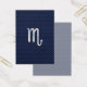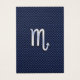 Ein Chrom wie Scorpio Zodiac Symbol auf einem marineblauen blauen Kohlefaserdesign Textur gedruckten Hintergrund. Ein modernes urbanes Design für eine großartige Geschenkidee zum Geburtstag. Verwenden Sie den Link "Diesen Designer Gefragt", um uns mit Ihren speziellen Designanfragen oder für Hilfe bei Ihren Anpassungsbedürfnissen zu kontaktieren.