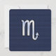 Ein Chrom wie Scorpio Zodiac Symbol auf einem marineblauen blauen Kohlefaserdesign Textur gedruckten Hintergrund. Ein modernes urbanes Design für eine großartige Geschenkidee zum Geburtstag. Verwenden Sie den Link "Diesen Designer Gefragt", um uns mit Ihren speziellen Designanfragen oder für Hilfe bei Ihren Anpassungsbedürfnissen zu kontaktieren.