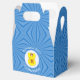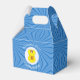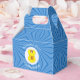 Personalized gable favor box showing an angel wearing the Scot Lion Rampant Flag for Hanukkah. The angel flies in a white circle of squiggly squares. Blue squiggly squares create the background. Above reads HANUKKAH 20??. You can change it all or just add the year you want. Below is a place for a guest of honors name or the occasion. Party item or gift wrapping item.