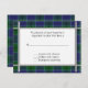Lieblich traditionelle tartan kariert Hochzeitskarte RSVP. Der farbenfrohe, blaue und grüne Scott Clan kariert im Hintergrund, mit einem weißen Textbereich, der von einem zinnigen Rand umgeben ist. Personalisieren Sie das Datum oder den Text auf Ihre Hochzeitsbedürfnisse.