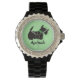 Personalisierter Scottie Hund WATCH in grünem Bogen auf grünem Hintergrund. Kann mit Namen, Ihrem Nachnamen oder Sprichwort personalisiert werden. Perfektes Geschenk für Sie oder Ihren Lieblings-Scottie Liebhaber.