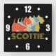 Scottie Dog Scottish Terrier Breed Vintag Look Quadratische Wanduhr