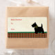 Black Scottish Terrier Dog mit Weihnachts-Holly Kragen mit Scotch Tartan Kariert Holiday Pattern. Perfekt personalisierte Geschenkmarke für Haustiere und Tierfreunde.