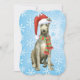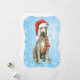 Feiern Sie die Urlaubssaison mit einem niedlichen schottischen Deerhound-Welpe, der eine Weihnachtsmannmütze inmitten von Schneeflocken mit den Worten trägt, Happy Howlidays auf der Rückseite! Ideal für Deerhound-liebende Familie und Freunde.