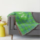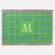 Scottish green and blue plaid tartan monogram throw blanket .