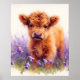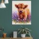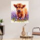 Scottish Highland Cow Calf Lila Wildblumen Poster