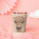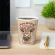 Schottische Highland Kuh mit Weihnachtsbeleuchtung dekoriert. Text ist bearbeitbar.