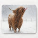 Scottish Highland Cow Licking Snowflakes Mousepad