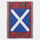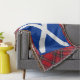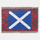 Eine coole Throwdecke für Liebhaber von Schottland und allen Sachen Scottish, mit einer Grafik der schottischen saltire Flagge mit weißen St Andrew Kreuz auf dunkelblauem. Der Hintergrund zur Schottland-Flagge ist ein Muster des berühmten königlichen Stuarts oder Stewart, der karierte Tartan.