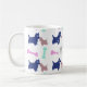 Adorable Scottish Terrier Hund und ihr Welpenmuster mit Knochen. Design auf weißer Tasse mit Namen. Personalisieren Sie den Schriftart Ihres Namens oder Monogramms nach Ihren Wünschen! Vergiss nicht die ganze Sammlung.