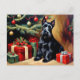 Scottish Terrier durch den dekorierten Weihnachtsbaum und festliche Weihnachtsgeschenke.