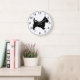 Keeping time for you, just another service of the versatile Scottie in your life! In Addition to clocks, created from our original paintings, these Scotty Dog images are available in seasonal designs on clothing, novelty and gift items of all sorts! Please take a look through our Scottish Terrier Shop We have Shops for many dog breeds with links posted in the Shop) Buy for yourself or as a special treat for your friends!