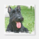 Schwarzer Scottie Hund mit Zunge, der Magnet aushängt.