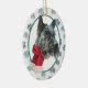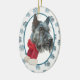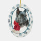 An der Vorderseite dieses Holiday Ornament ist ein schönes Aquarellbild eines schwarzen schottischen Terrier mit einem roten Winterschal. Das Bild wird auf einem weißen ovalen, grau gerahmten Bild platziert und mit einem grauen Pfotenmuster umrahmt. Die Rückseite des Ornaments hat die gleiche Grenze zu Ihrem benutzerdefinierten Text in der Mitte. Ideal für jeden, der sich im Besitz eines spielerischen Scottie Hundes befindet.
