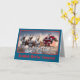 Ein Team schottischer Terrier mit Antlers zieht den Weihnachtsmann und seinen Schlitten.