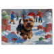 Ein fröhlicher Scottish Terrier läuft mit einem festlichen roten Weihnachtshut glücklich durch die schneebedeckte Winterszene. Dieses charmante Design unterstreicht die unverwechselbare Silhouette der Rasse, den wirren Mantel und die gefühlvolle Persönlichkeit, während es die Wärme und Freude der Ferienzeit einnimmt. Ein schöner Wintermoment voller festlichen Beifall.