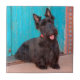 Scottish Terrier sitzt vor einer farbenfrohen Tür Fliese
