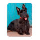 Scottish Terrier sitzt vor einer farbenfrohen Tür Magnet